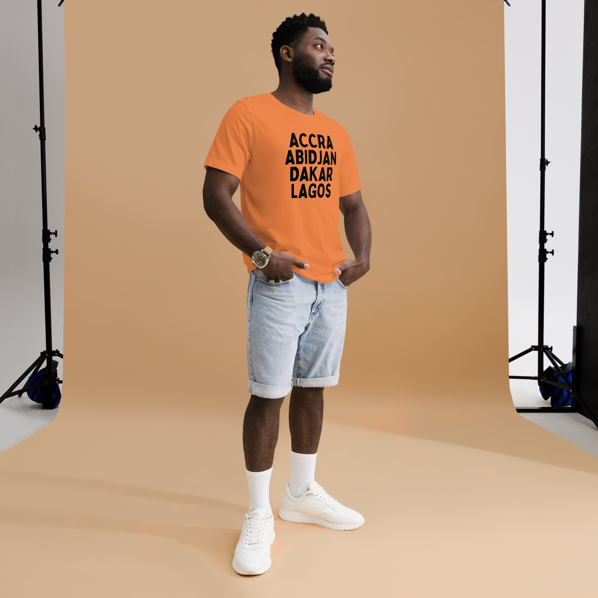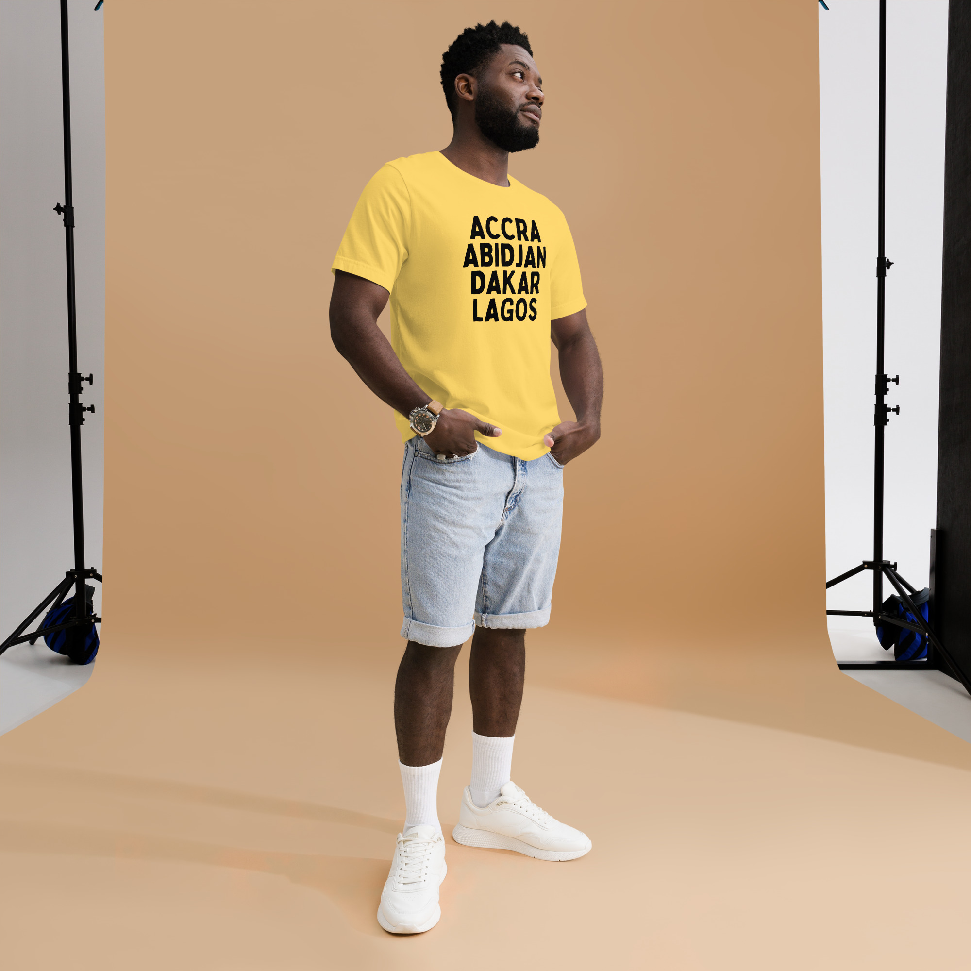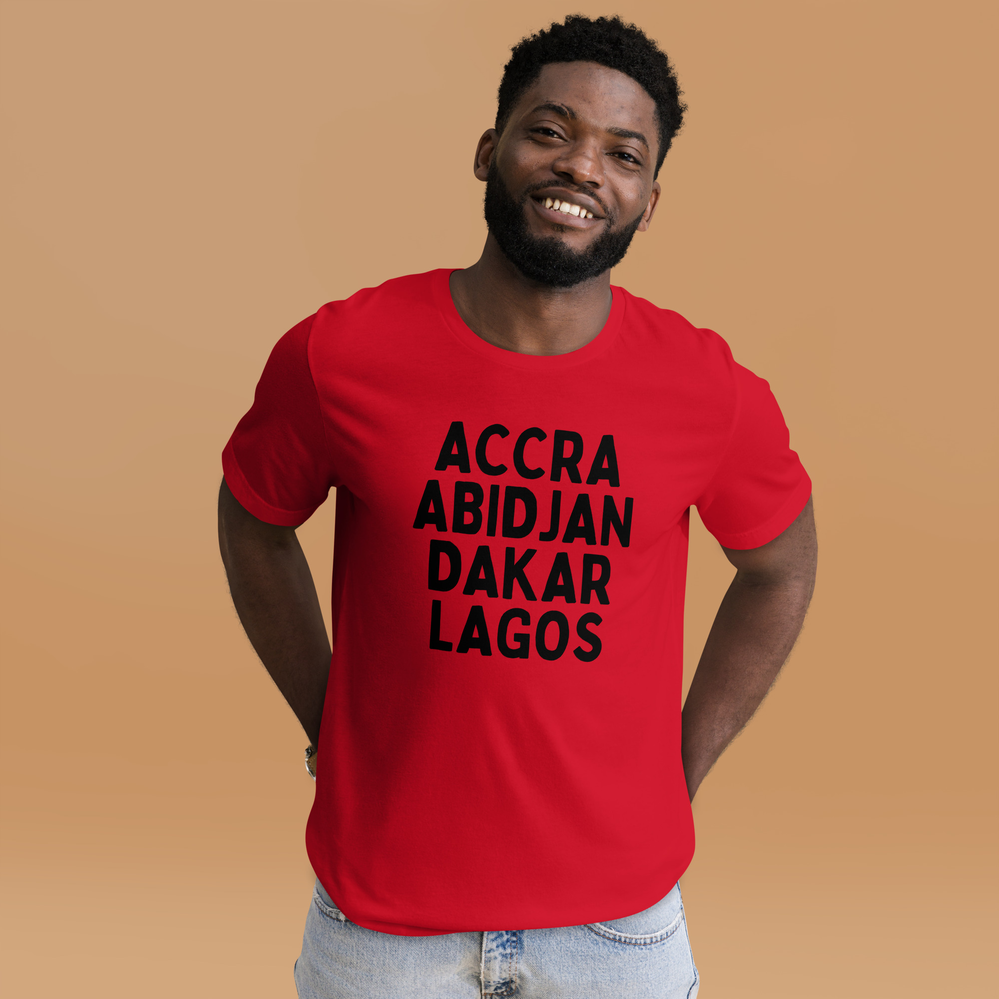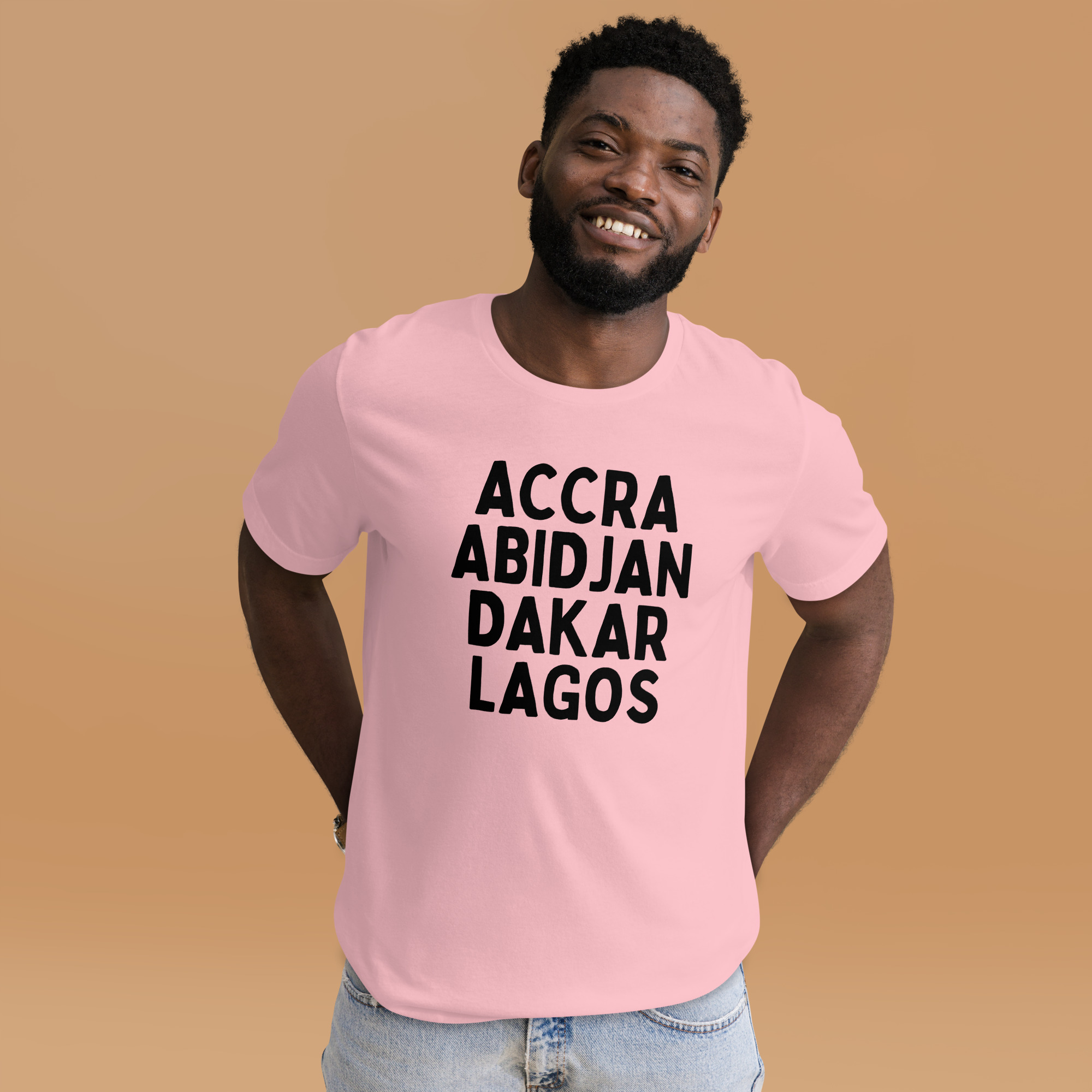 From our Africa Regions series, this t-shirt reps some of our favorite cities in Africa: Accra, Abidjan, Dakar, and Lagos